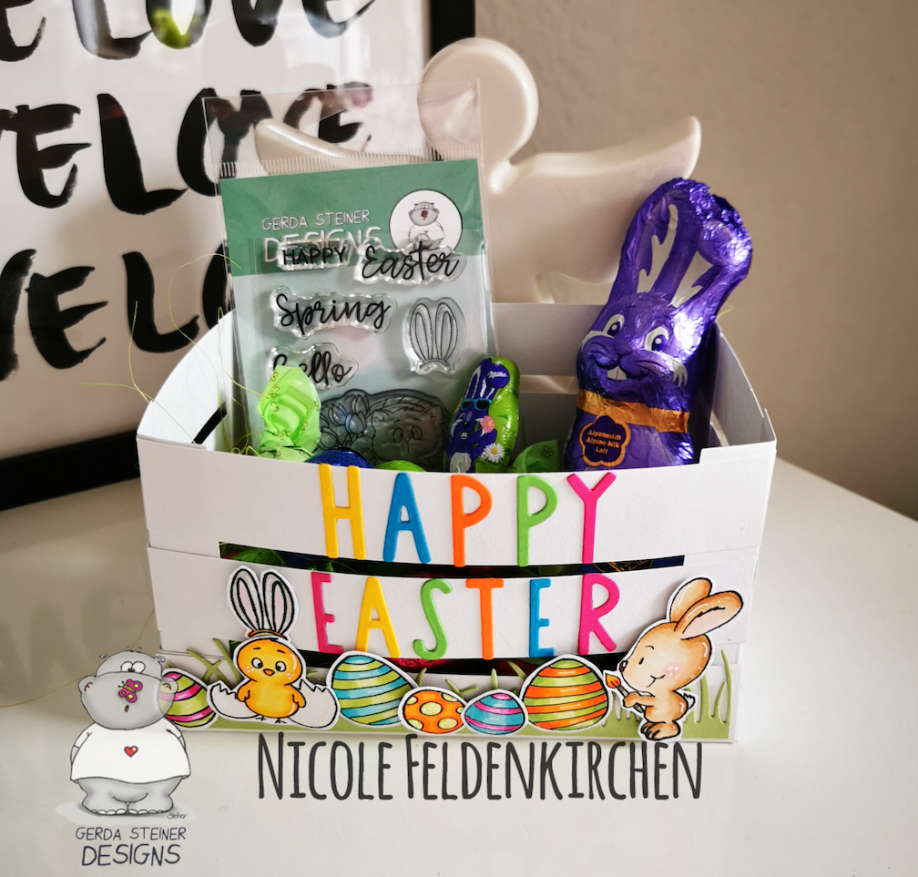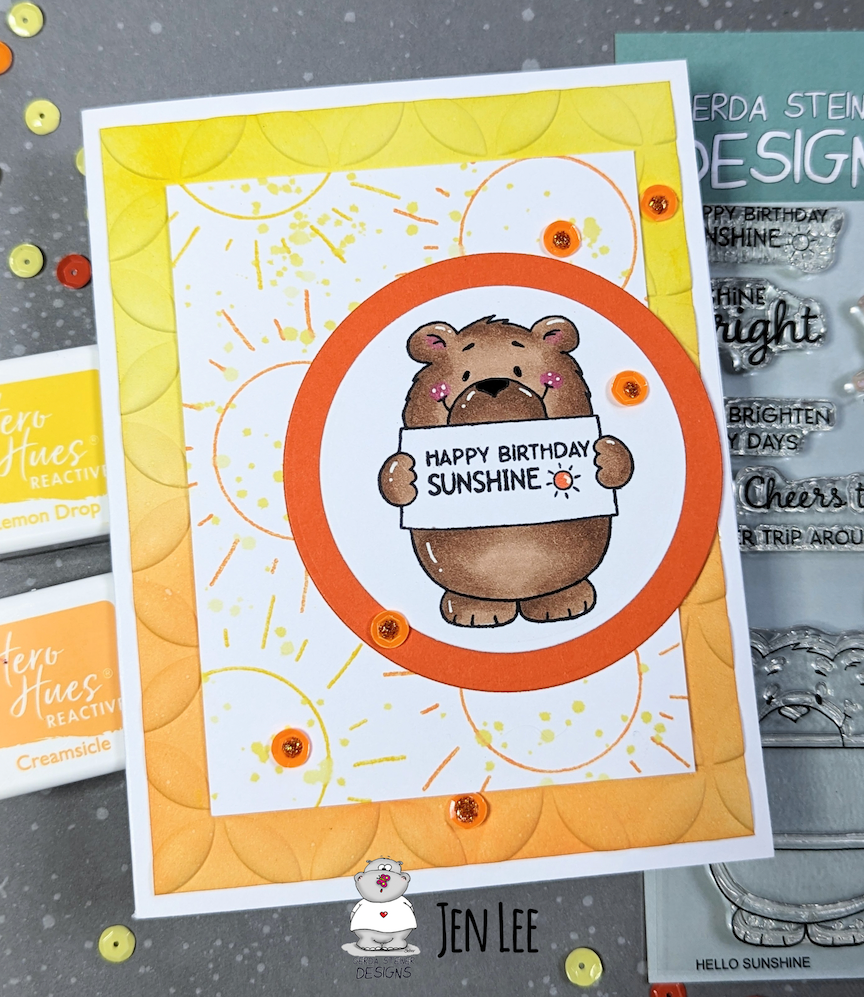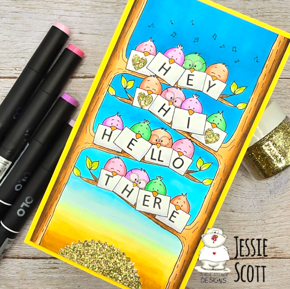 I keep seeing the fun pastel colors for the birds and couldn't resist using them as well. I took some glitter paper and used a starburst punch to make a sun rising on my adorable morning birds. I coated the hearts with glue and covered them in glitter for a final touch.