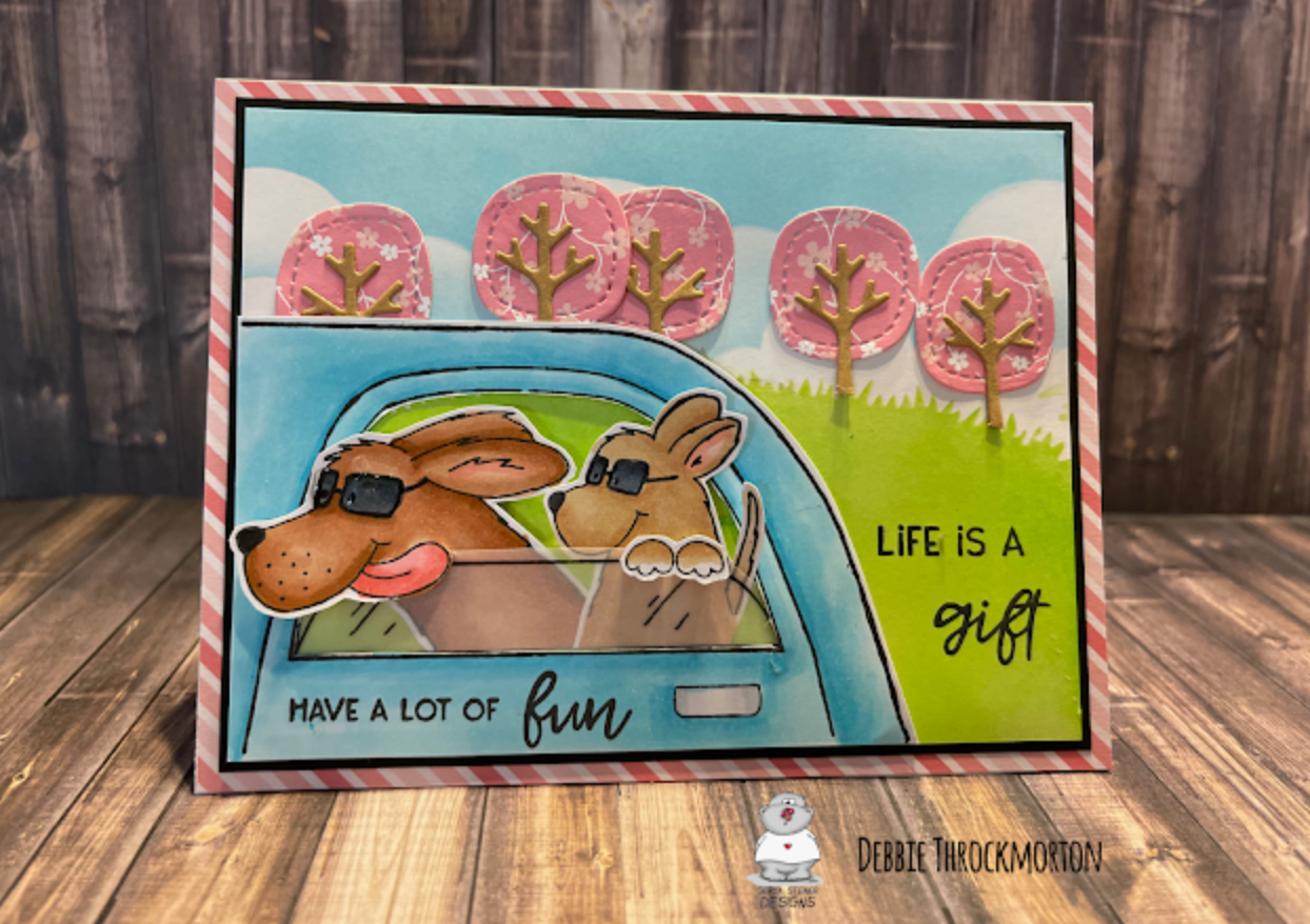 I like to use the "insert - shape" option to make a card front shape to size my images before printing. This one was sized for a minislim 5.25"x3.5". I then added some heart shapes in the empty spots and my text in the signs.