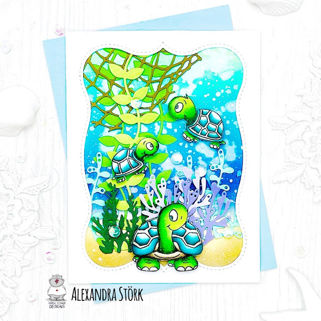 The quality of Gerda Steiner Designs (GSD) stamps and dies are good. I usually use Versa Fine Clair ink and the stamp on the card come out very clear and crisp. I just made a card for my sister in law's birthday using GSD Go Wild stamp and die and I use Altenew mushroom stencils as the background. I have fun making this card.